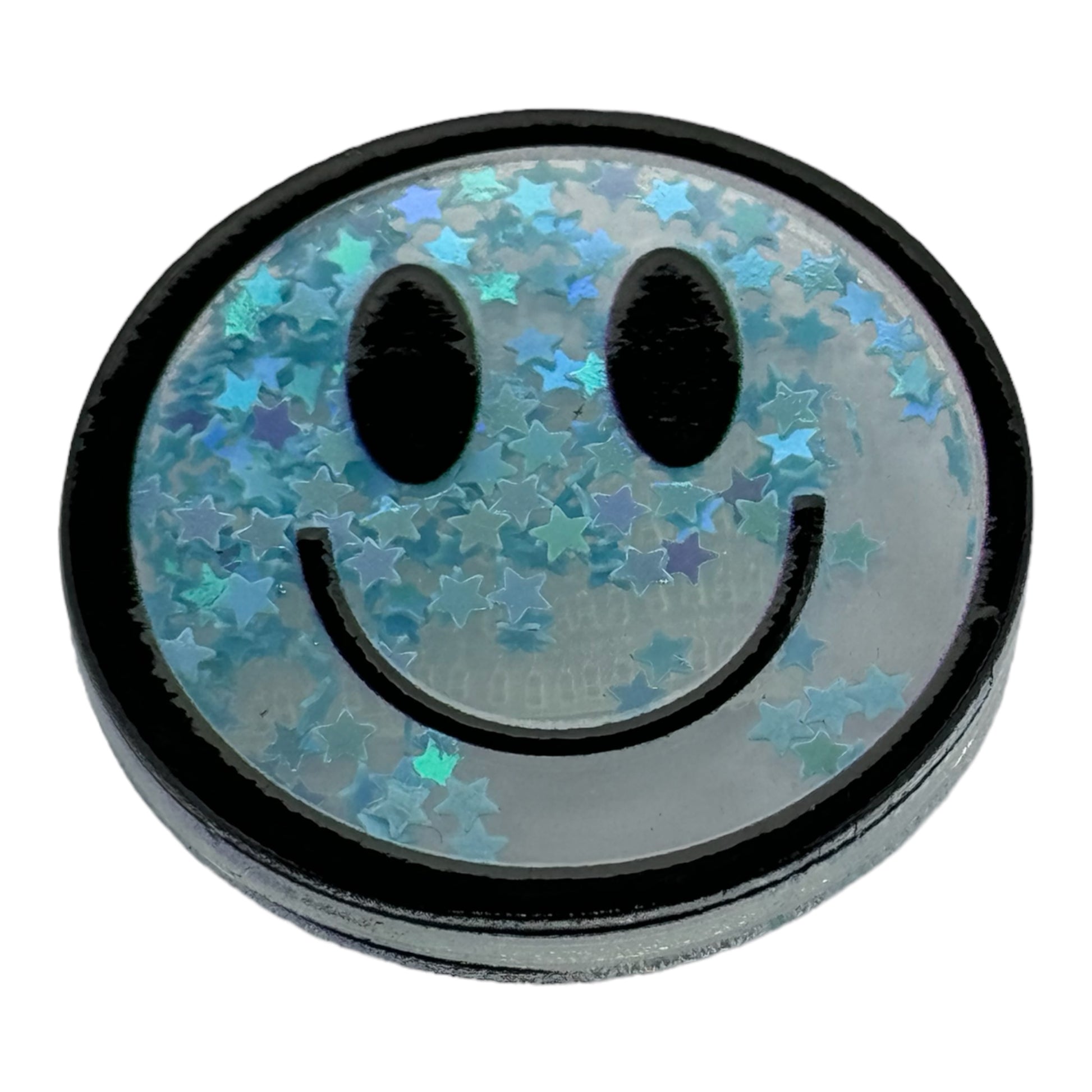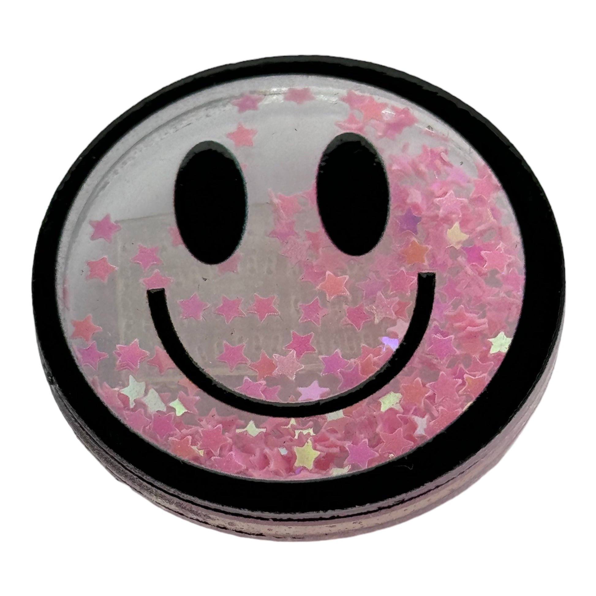 Acrylic shaker with colorful glitter inside.